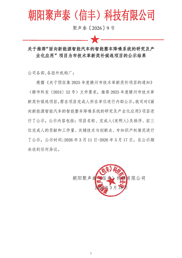 “面向新能源智能汽车的智能整车降噪系统的研究及产业化应用”公示结果